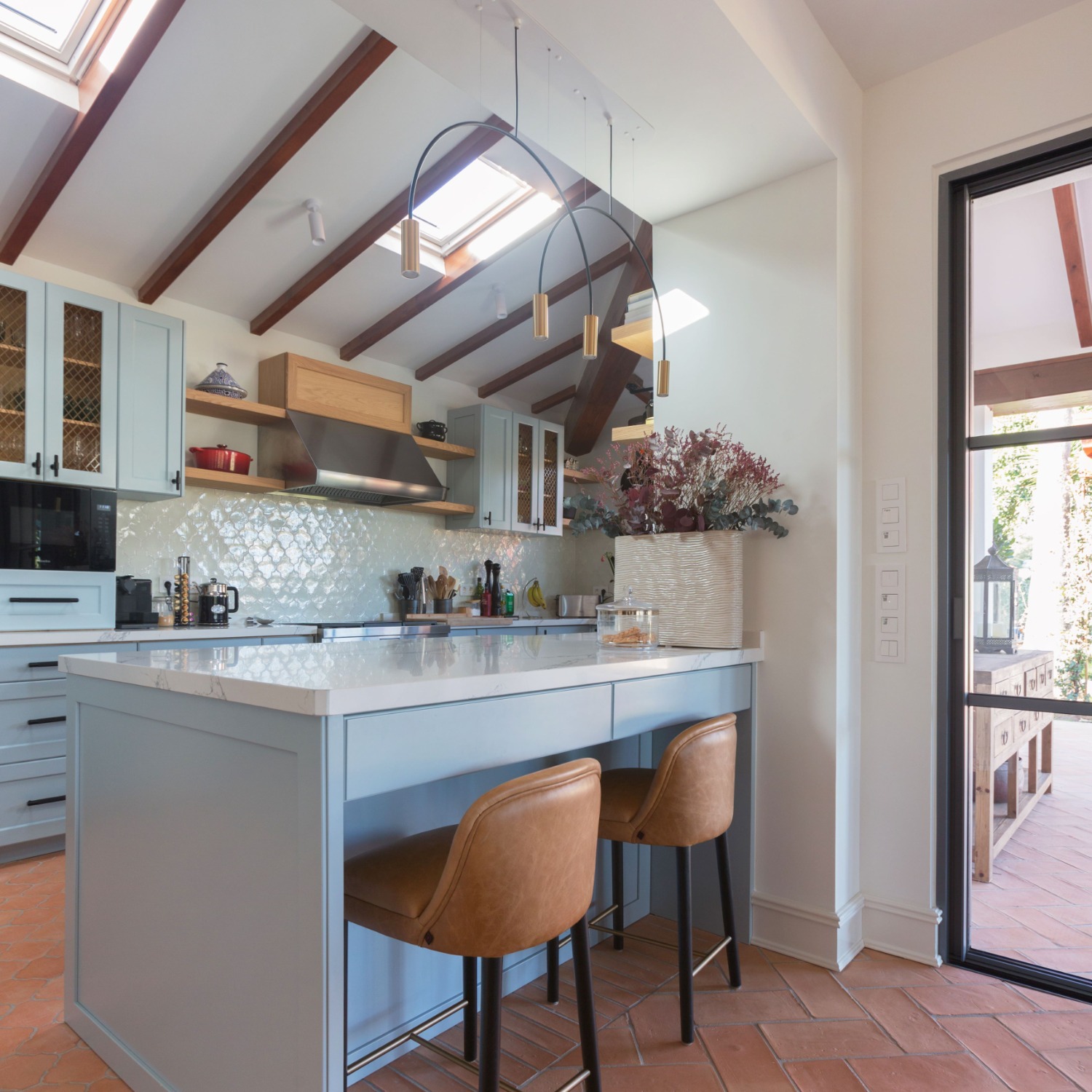 - Dinámica más social. Este tipo de distribución favorece una vida social más dinámica. En una residencia, ya sea habitual o vacacional, la cocina deja de ser un lugar aislado y se convierte en un punto de encuentro. Cocinar mientras se conversa con invitados, compartir desayunos con vistas al exterior o integrar la cocina en celebraciones familiares son experiencias que aportan valor real al día a día.